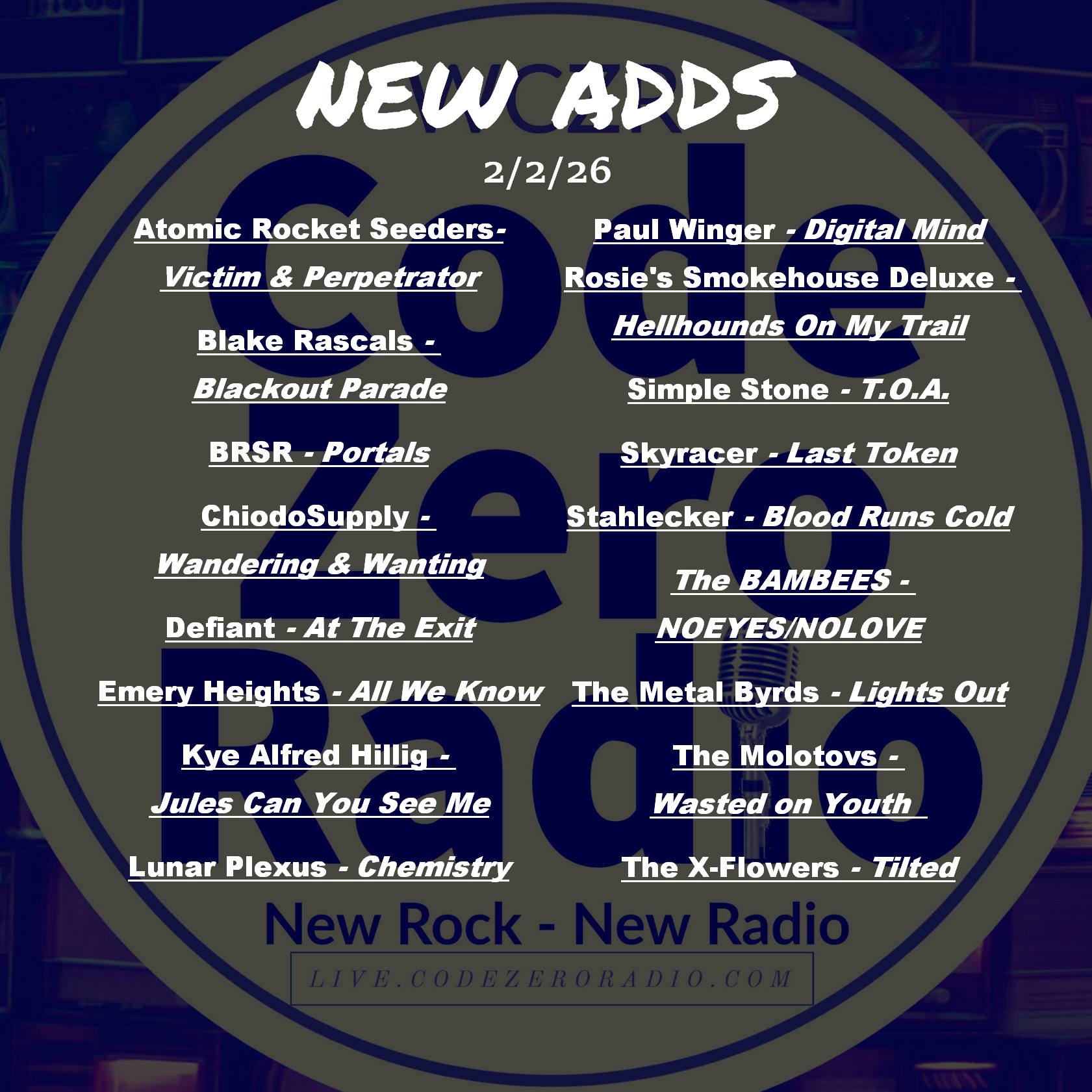 - Wed. – High Anxiety Radio 7 pm w/occasional encore episodes!